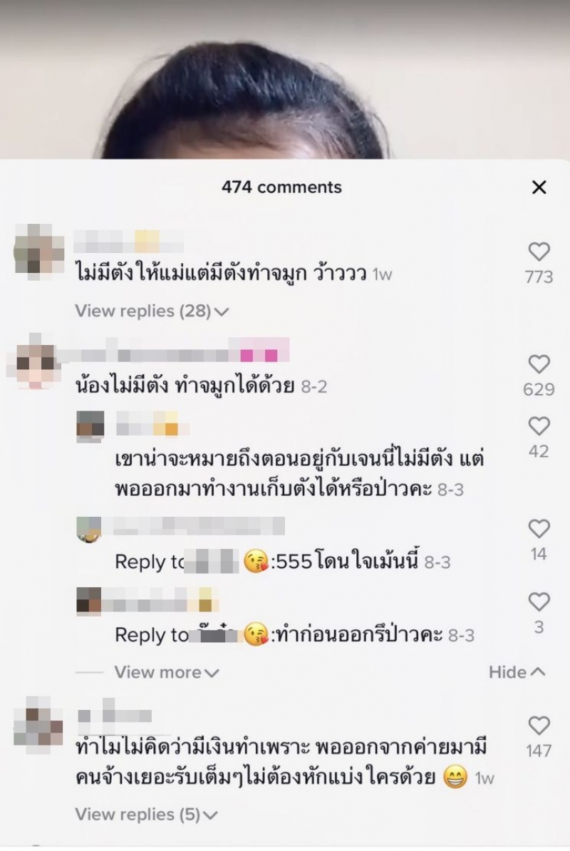 4.ที่บอกว่าชีวิตนี้ไม่มีทางดัง ตอบเลย ตอนนี้งานเยอะมากค่ะเงินเก็บก็เยอะพอสมควร เเล้วพึ่งให้เเม่ไป9500หนูทำงานเเค่3-4วัน เเต่ก่อนเคยรับงานร้องเพลงตามบ้านตามงานติปคืนนึง2-3พันค่ะ เเต่ก่อนมีทองใส่เป็นสร้อยข้อมือตอนนี้ขายเพราะไปจ่ายค่าเทอมเเละเอามาใช้ในชีวิตประจำวันค่ะ