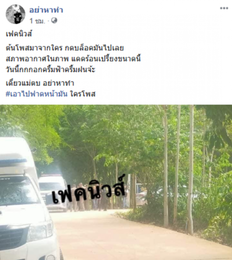 จากที่โลกโซเซี่ยลมีการส่งต่อกันเป็นจำนวนมากสำหรับภาพตำรวจลงพื้นที่บ้านกกกอก ทำให้ต่างก็พากันคิดว่าใกล้จบเกมส์แล้วตำรวจใก้ลคลี่คลายคดีแล้ว หรือเตรียมรอรวบตัวใครหรือเปล่านั้น ล่าสุด เมื่อวันที่ 13 สิงหาคม เพจ อย่าหาทำ ได้โพสต์ข้อความระบุว่า เฟคนิวส์ ต้นโพสต์มาจากใคร กดบล็อคมันไปเลย สภาพอากาศในภาพ แดดร้อนเปรี้ยงขนาดนี้ วันนี้กกกอกครึ้มฟ้าครึ้มฝนจ้ะ