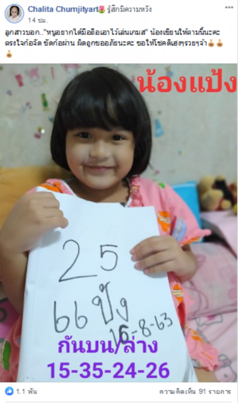 ใกล้เข้ามาแล้วจ้า สำหรับวันที่หลายๆคนรอคอย วันประกาศผลรางวัลสลากกินแบ่งรัฐบาลประจำวันที่ 16 สิงหาคม 63 นั่นเองจ้า วันนี้เราจึงไปหาเลขสวยๆ รวบรวมข้อมูลมาฝากกัน หลังมีผู้ใช้เฟสบุ๊คชื่อ Chalita Churnjityart ได้ออกมาโพสต์ภาพ พร้อมทั้งได้ระบุข้อความว่า