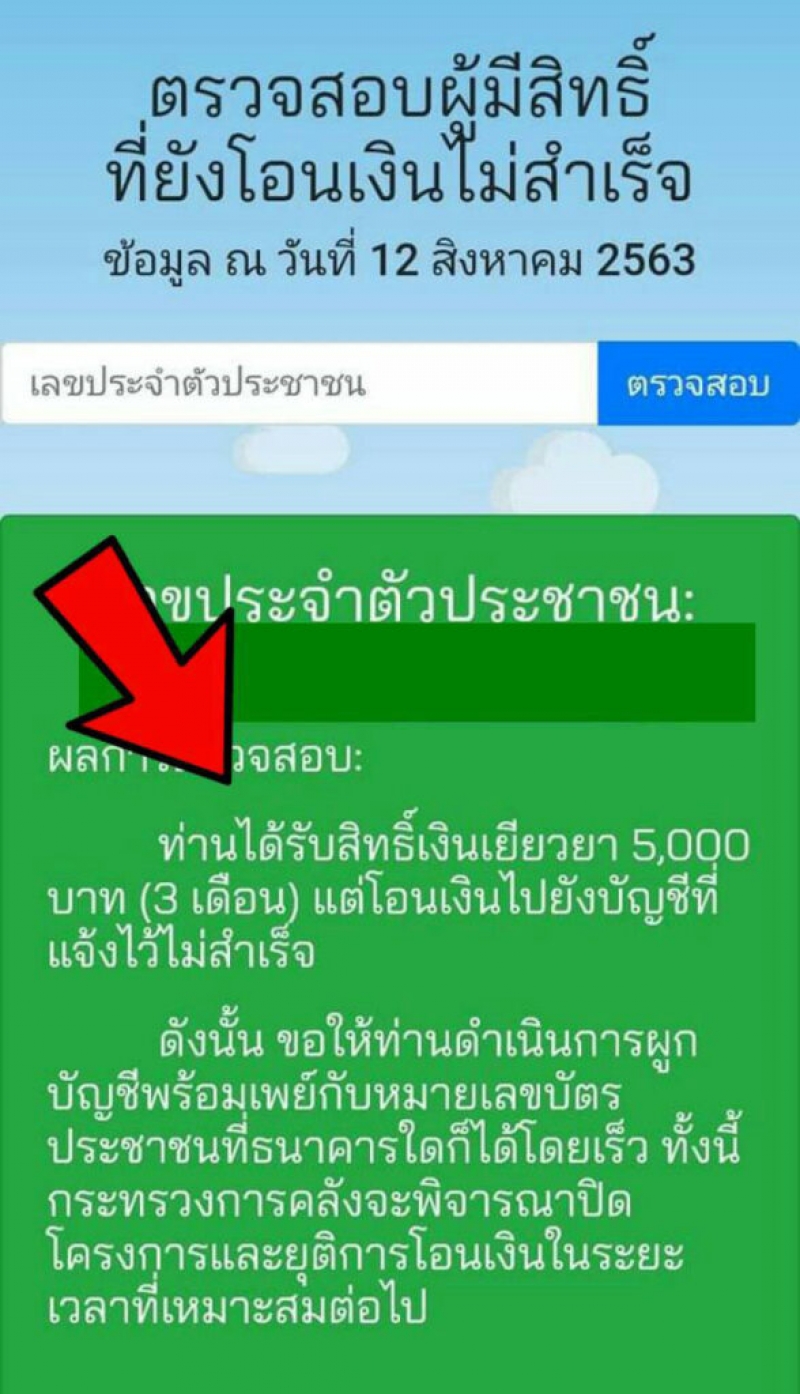 ทั้งนี้ สามารถเข้าไปตรวจสอบรายชื่อ กลุ่ม ผู้มีสิทธิ์ ที่ยังโอนเงินไม่สำเร็จ ได้แล้ว ตั้งแต่วันนี้ 12 สิงหาคม 2563 เป็นต้นมา