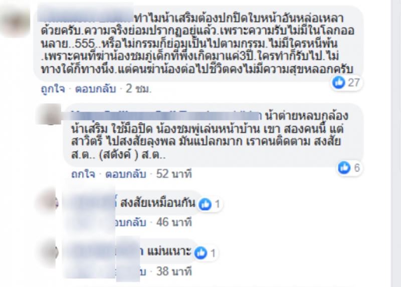 อย่างไรก็ตามตราบใดที่ตำรวจยังไม่สามารถให้คำตอบได้ สังคมก็มีสิทธิ์สงสัยเป็นเรื่องธรรมดา หากแต่ไม่ควรไปกล่าวหาใครเด็ดขาด