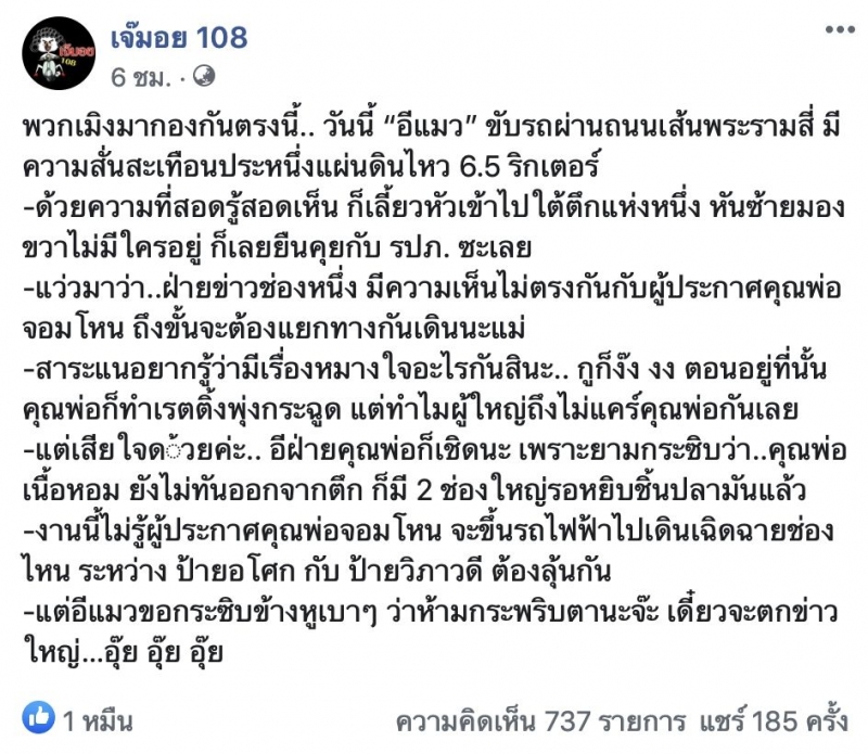ทำเอาบรรดาขาเผือกต่อมกระตุกกันเป็นแถวหลังเพจชื่อดังอย่าง เจ๊มอย108 ได้ออกมาใบ้อักษรย่อปริศนาพร้อมทั้งได้ระบุข้อความว่า