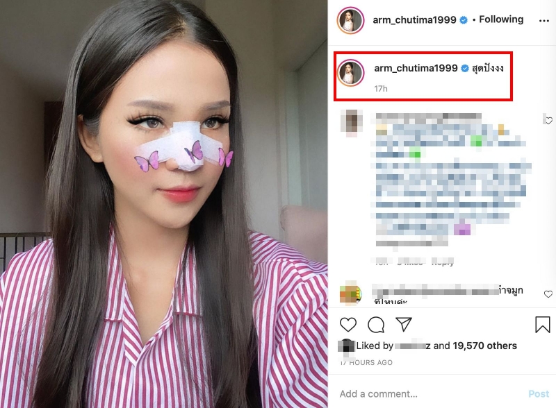 อย่างไรก็ตามล่าสุด สาวอาม ชุติมา ได้โพสต์ภาพทำสวยมาใหม่พร้อมอัพรูปภาพ พร้อมแคปชั่น สุดปัง