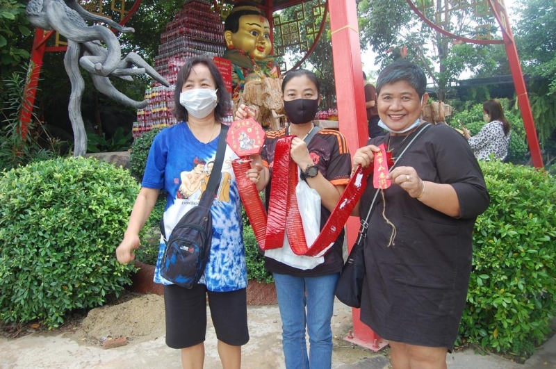 ทั้งนี้พบว่า นางเกษร เทียนน้ำเงิน อายุ 60 ปี นางธนพร คำอ่อน อายุ 57 ปี นางพิมลวรรณ สนามทอง อายุ 44 ปี ทั้งสามคนมีอาชีพธุรกิจส่วนตัวและเป็นแม่บ้าน ได้เดินทางนำน้ำแดง จำนวน 9 แพ็ก ฟักทอง จำนวน 3 ลูก พวงมาลัย ประทัด จำนวน 1,000 นัด เข้ามาจุดถวายเพื่อทำการแก้บนพ่อปู่ฤๅษีพรหมเมศและกุมารเจ้าสัวเฮง หลังถูกรางวัลเลขท้าย 2 ตัว 88 รับเงินรวมกัน 60,000 บาท