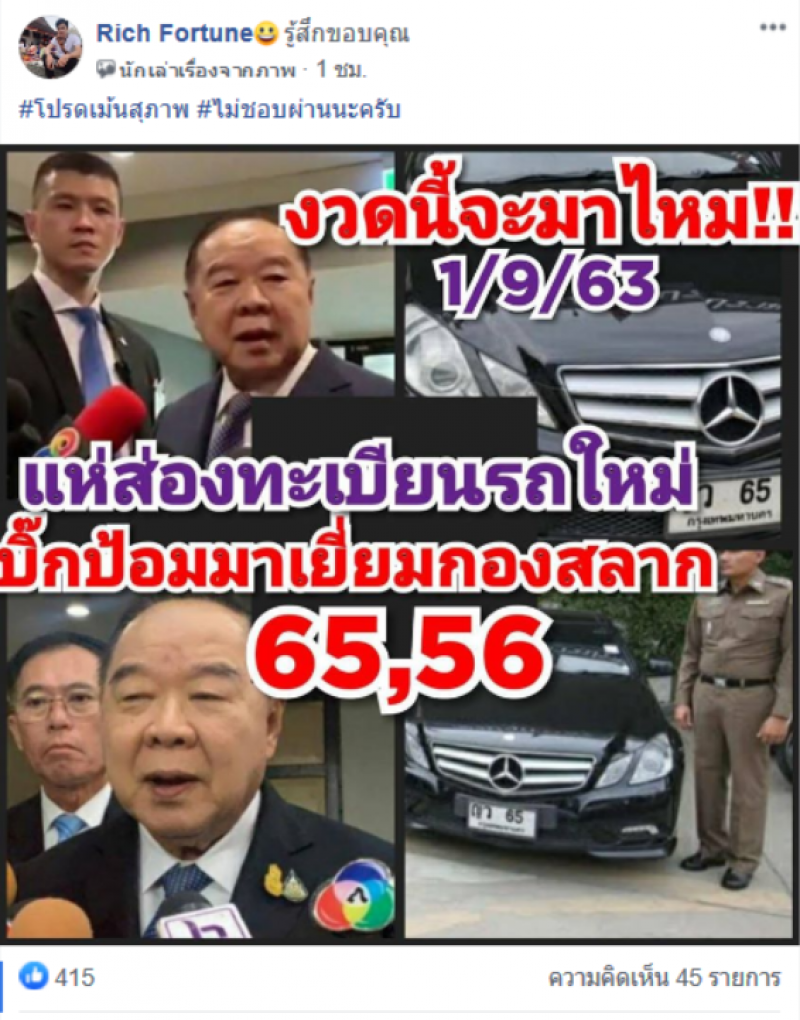 มาแล้ว เลขทะเบียนรถคันใหม่ บิ๊กป้อม