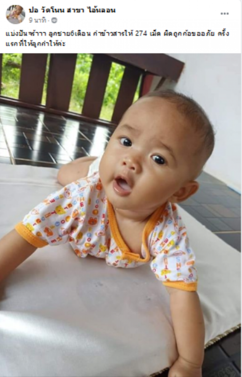 แบ่งปันจร้าาา บุตรชาย6เดือน กำข้าวสารให้ 274 เม็ด ผิดถูกก้อขออภัย ครั้งแรกที่ให้บุตรกำให้ค่ะ