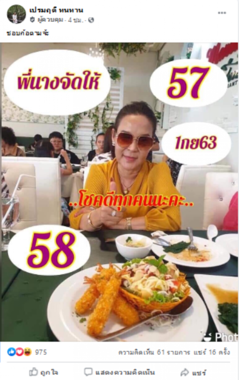 ใกล้เข้ามาแล้วจ้า สำหรับวันที่หลายๆคนรอคอย สำหรับการประกาศผลรางวัล สลากกินแบ่งรัฐบาลระจำวันที่ 1 กันยายน 63 เชื่อว่าหลายๆคนคงมีเลขในใจอยู่แล้ว และหลายๆคนคงกำลังมองหาเลขกันอยู่ วันนี้เราจึงได้รวบรวมข้อมูลมาฝากกันโดยมีผู้ใช้เฟสบุ๊คชื่อ เปรมฤดี ทนทาน ได้ออกมาโพสต์ภาพเลขพี่นาง ศิริพร พร้อมทั้งได้ระบุข้อความว่า