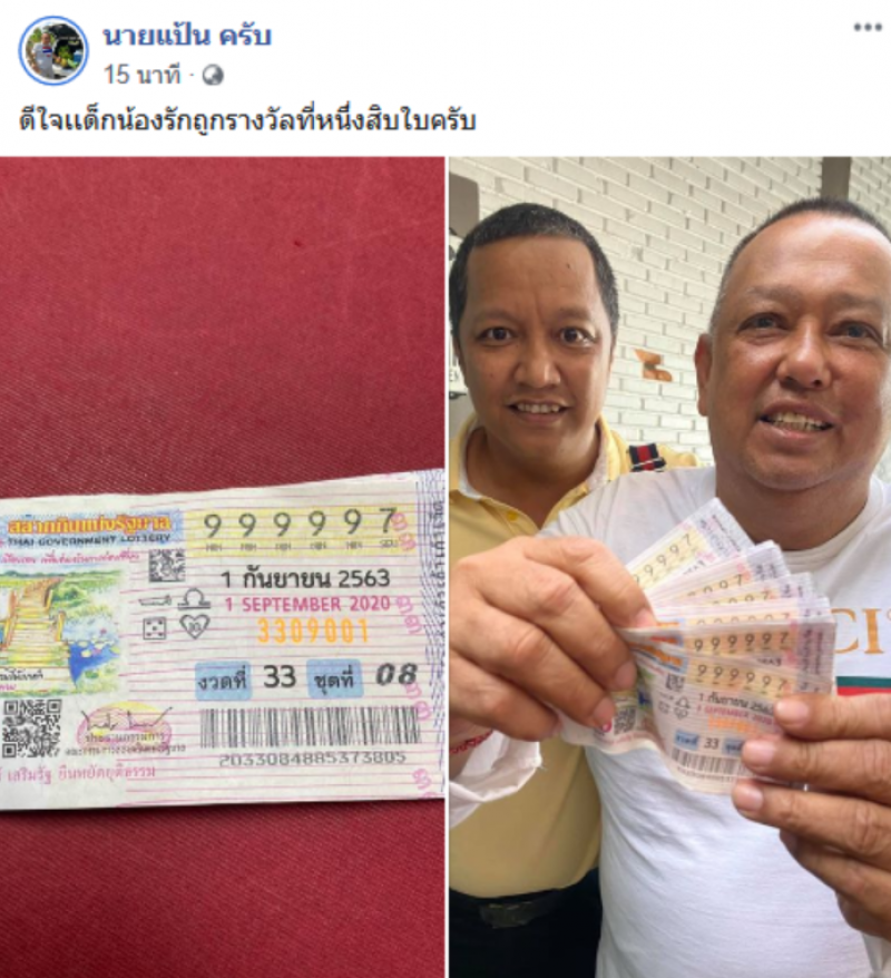 ฮือฮากันทั้งประเทศ หนุ่มถูกรางวัลที่ 1 เป็นปึก
