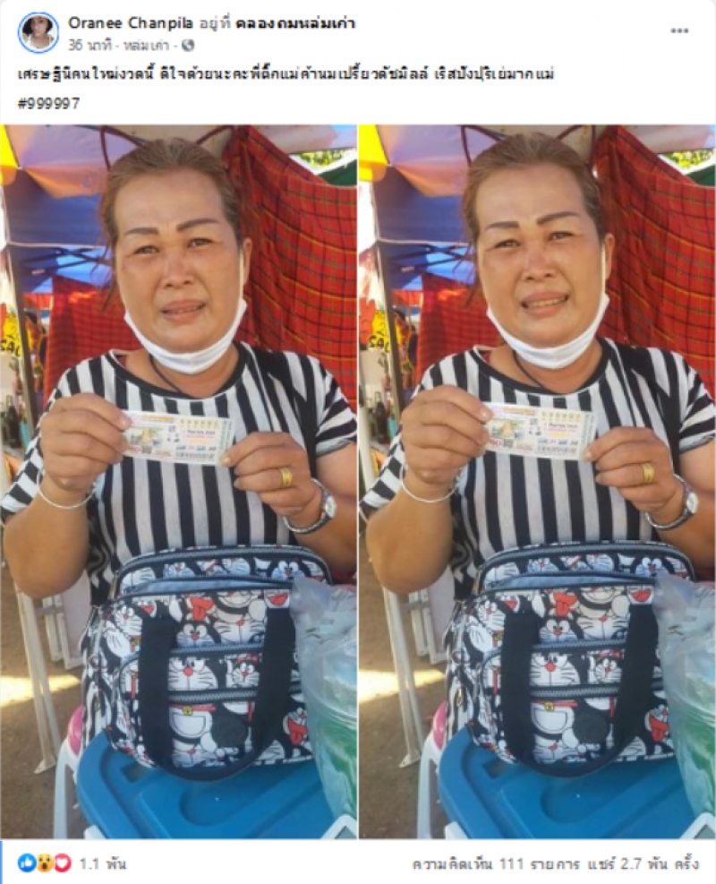 เศรษฐีนีคนใหม่ แม่ค้านมเปรี้ยวเฮ ถูกรางวัลที่ 1 เริสปังปุริเย่มากแม่
