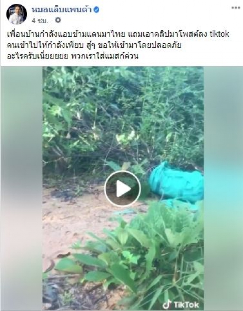 เพื่อนบ้านกำลังแอบข้ามแดนมาไทย แถมเอาคลิปมาโพสต์ลง tiktok คนเข้าไปให้กำลังเพียบ สู้ๆ ขอให้เข้ามาโดยปลอดภัย อะไรครับเนี่ยยยยย พวกเราใส่แมสก์ด่วน