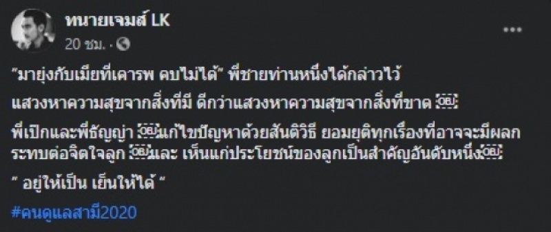 ล่าสุด ทนายเจมส์ ได้ออกมาโพสต์ภาพคู่กับ เป๊ก สัญชัย" พร้อมระบุข้อความว่า มายุ่งกับเมียที่เคารพ คบไม่ได้ พี่ชายท่านหนึ่งได้กล่าวไว้