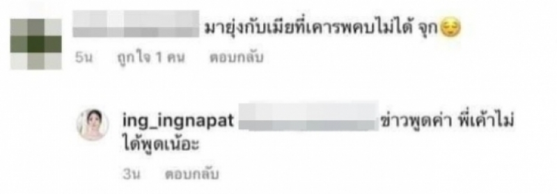 อินสตราแกรมของอิงอิงก็ยังคงโดนถล่มต่อเนื่องหลังจากที่เปิดอินสตราแกรมและให้คอมเมนต์ พบว่ามีชาวเน็ตท่านหนึ่งเข้าคอมเมนต์ว่า มายุ่งกับเมียที่เคารพคบไม่ได้ จุก สาวอิงอิงตอบทันทีว่า ข่าวพูดค่า พี่เค้าไม่ได้พูดเน้อะ ซึ่งปัจจุบันเธอได้ปิดไอจีเป็นส่วนตัวเรียบร้อย