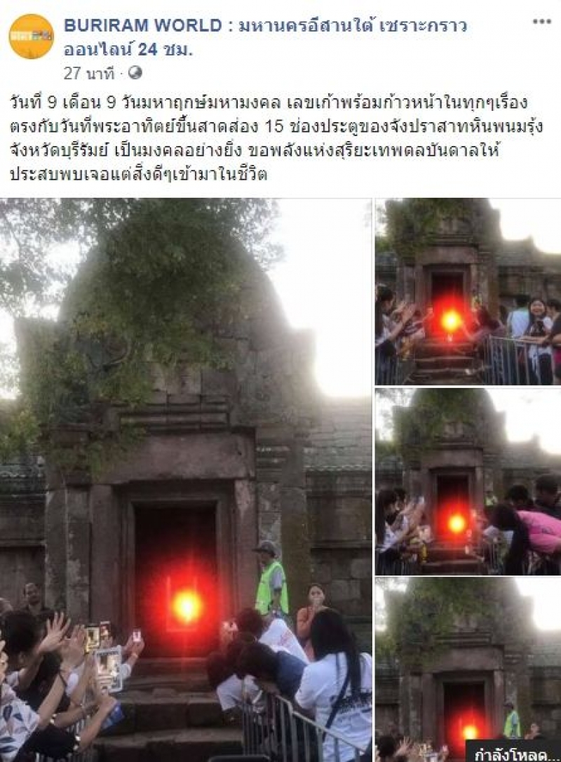 วันที่ 9 เดือน 9 วันมหาฤกษ์มหามงคล ตรงกับวันที่พระอาทิตย์สาดส่อง 15 ช่องประตูปราสาทเขาพนมรุ้ง