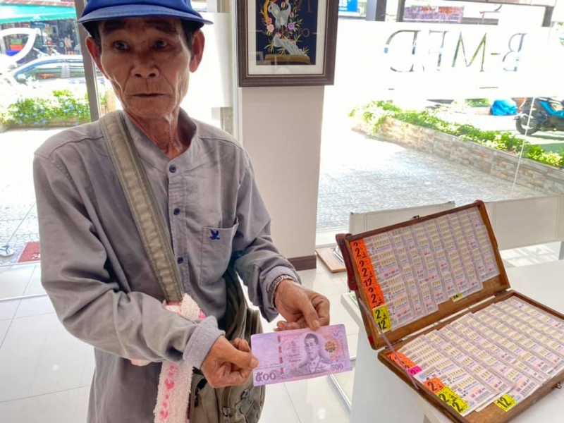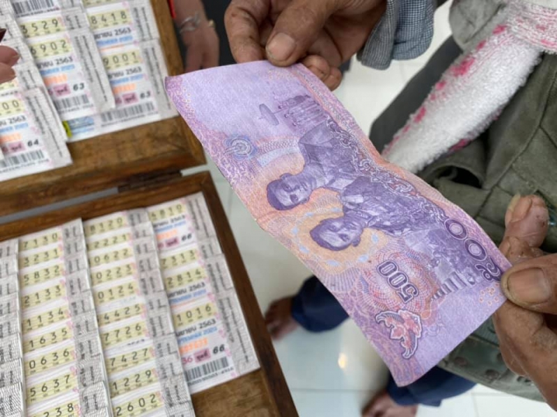 สาวกำเงินแบงค์ 500 มาซื้อลอตเตอรี่