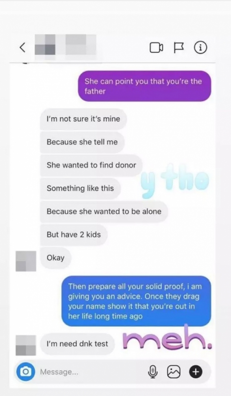 "I'm not sure it's mine , because she tell me , She wanted to find donor , because she wanted to be alone (ฉันไม่แน่ใจว่าเป็นของฉัน , แต่เธอบอกฉันอย่างนั้น , เธอต้องการให้ฉันเป็นผู้ให้ , เพราะเธออยากอยู่คนเดียว, แต่มีลูก 2 คน"