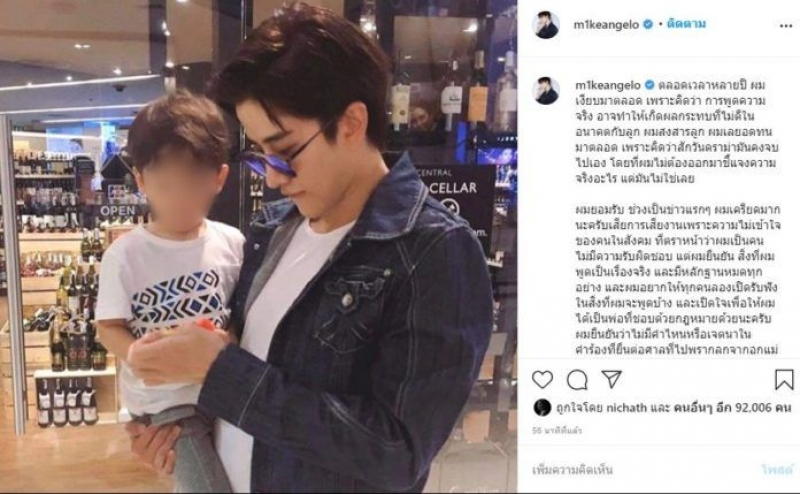 ผมยอมรับ ช่วงเป็นข่าวแรกๆ ผมเครียดมากนะครับ เสียการเสียงาน เพราะความไม่เข้าใจของคนในสังคม ที่ตราหน้าว่าผมเป็นคนไม่มีความรับผิดชอบ แต่ผมยืนยัน สิ่งที่ผมพูดเป็นเรื่องจริง และมีหลักฐานหมดทุกอย่าง และผมอยากให้ทุกคนลองเปิดรับฟังในสิ่งที่ผมจะพูดบ้าง และเปิดใจเพื่อให้ผมได้เป็นพ่อที่ชอบด้วยกฎหมายด้วยนะครับ