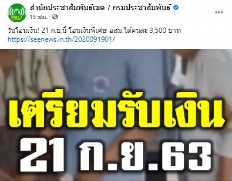 เมื่อวันที่ 19 กันยายน 2563 ที่ผ่านมา ที่เพจเฟซบุ๊ก สำนักประชาสัมพันธ์เขต 7 กรมประชาสัมพันธ์ ได้รายงานว่า
