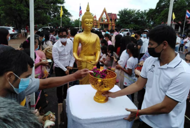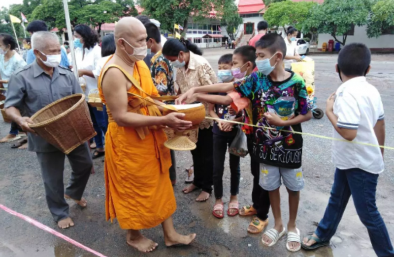 ไม่เหมือนใคร ชาวไทยเบิ้งบ้านโคกสลุง ร่วมกันตักบาตรลูกอม