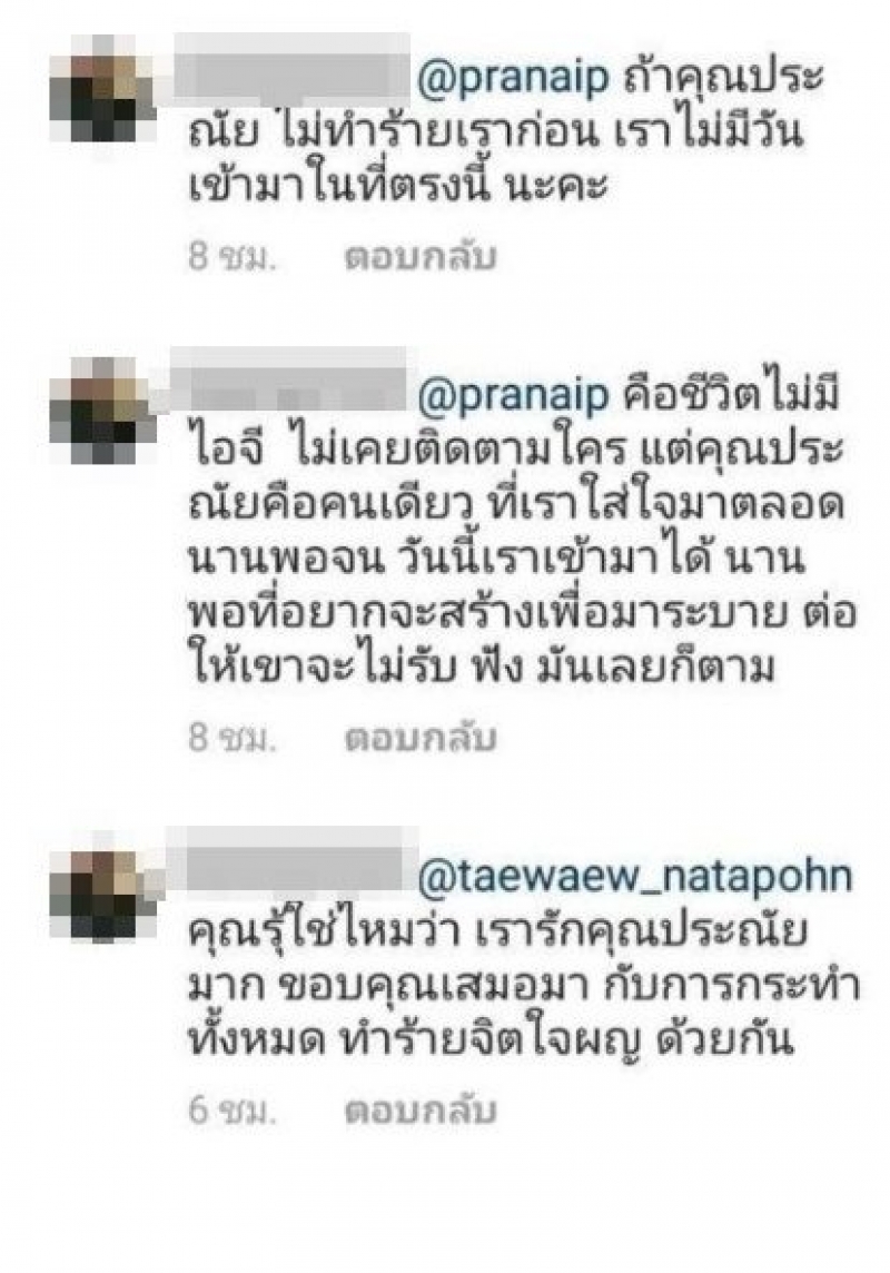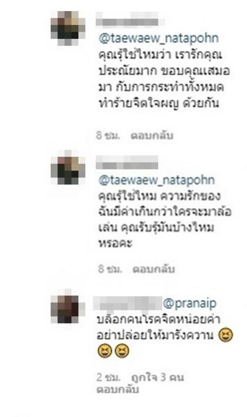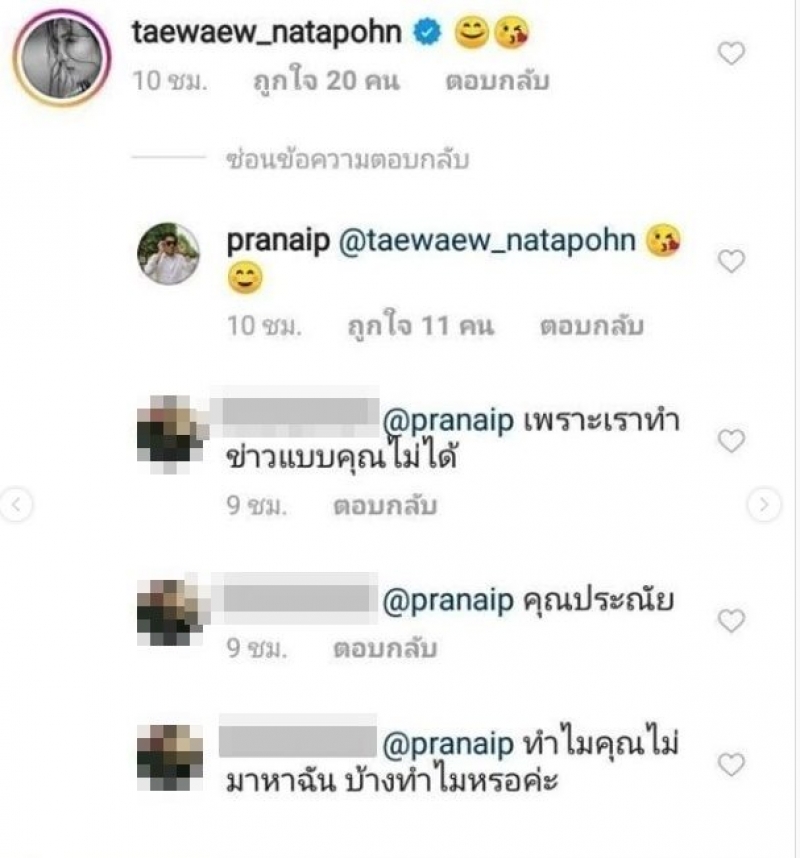 สาวปริศนารายดังกล่าว ยังมีการแท็กถึง แต้ว ณฐพร พร้อมบอกว่า@taewaew_natapohn คุณรุ้ใช่ไหมว่า เรารักคุณประณัยมาก ขอบคุณเสมอมา กับการกระทำทั้งหมด ทำร้ายจิตใจผญ ด้วยกัน@taewaew_natapohn คุณรุ้ใช่ไหม ความรักของฉันมีค่าเกินกว่าใครจะมาล้อเล่น คุณรับรุ้มันบ้างไหม หรอคะเป็นต้น