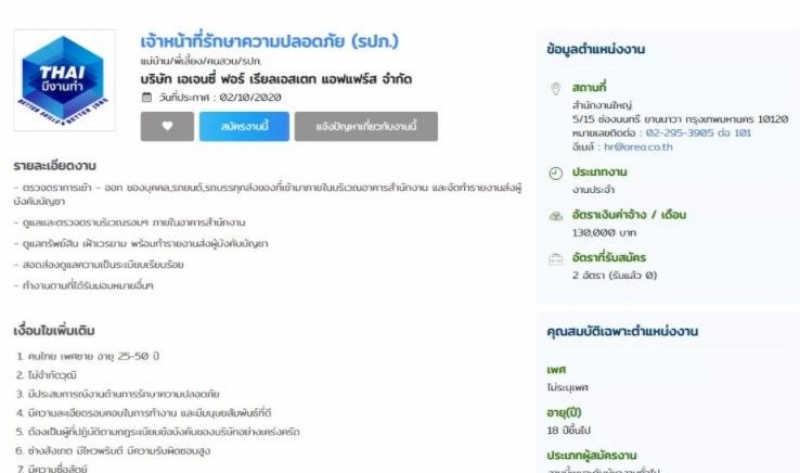 บริษัท อ. ประกาศรับสมัครเจ้าหน้าที่รักษาความปลอดภัย (รปภ.) เงินเดือน 130,000 บาท