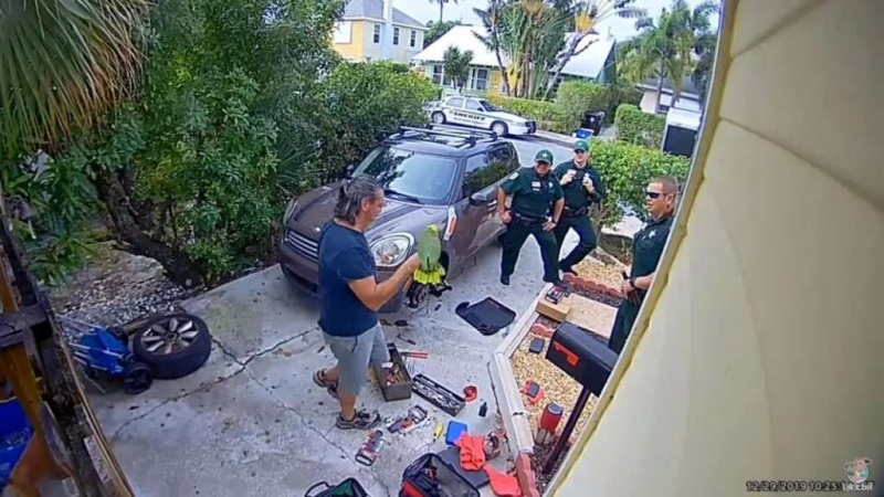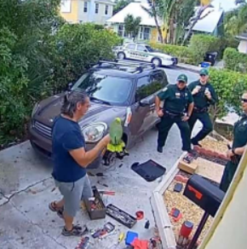 ตำรวจปาล์มบีช แห่กันมาที่บ้านหลังหนึ่ง หลังเพื่อนบ้านร้องเรียนว่ามีผู้หญิงร้อง ช่วยด้วยค่ะ ปล่อยฉันออกไปที