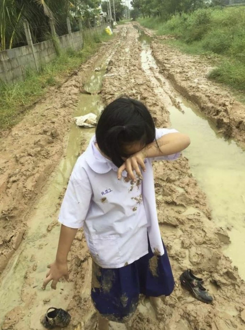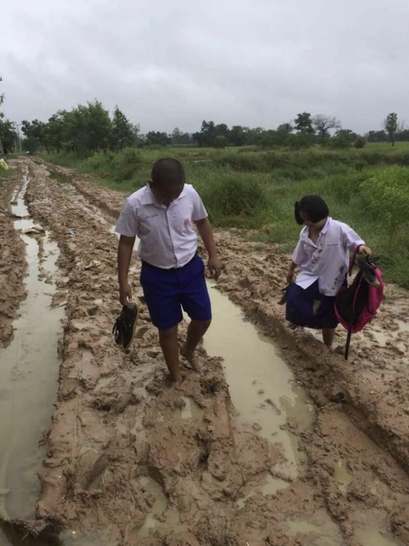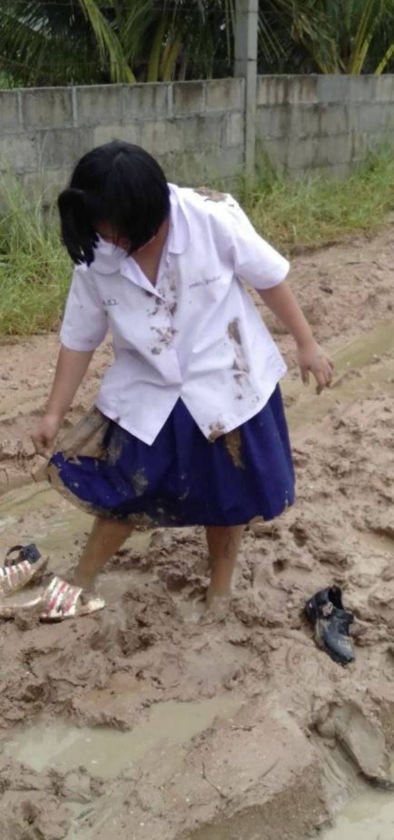 ยิ่งช่วงนี้ประเทศไทยพายุเข้า ฝนตกหนักตลอดทุกวัน ทำให้สภาพทางเละกว่าเดิม ดินโคลนหนาขึ้นมีน้ำท่วมขัง หนูๆนักเรียนเดินทางไปด้วยความยากลำบากในทุกๆเช้า ไร้หน่วยงานมาเหลียวเเล ช่วยเหลือปรับปรุงถนนเส้นนี้