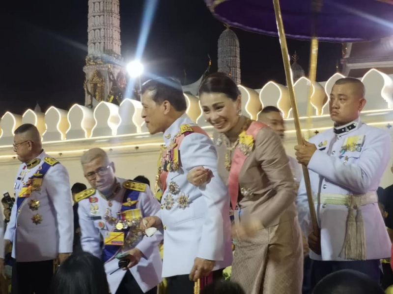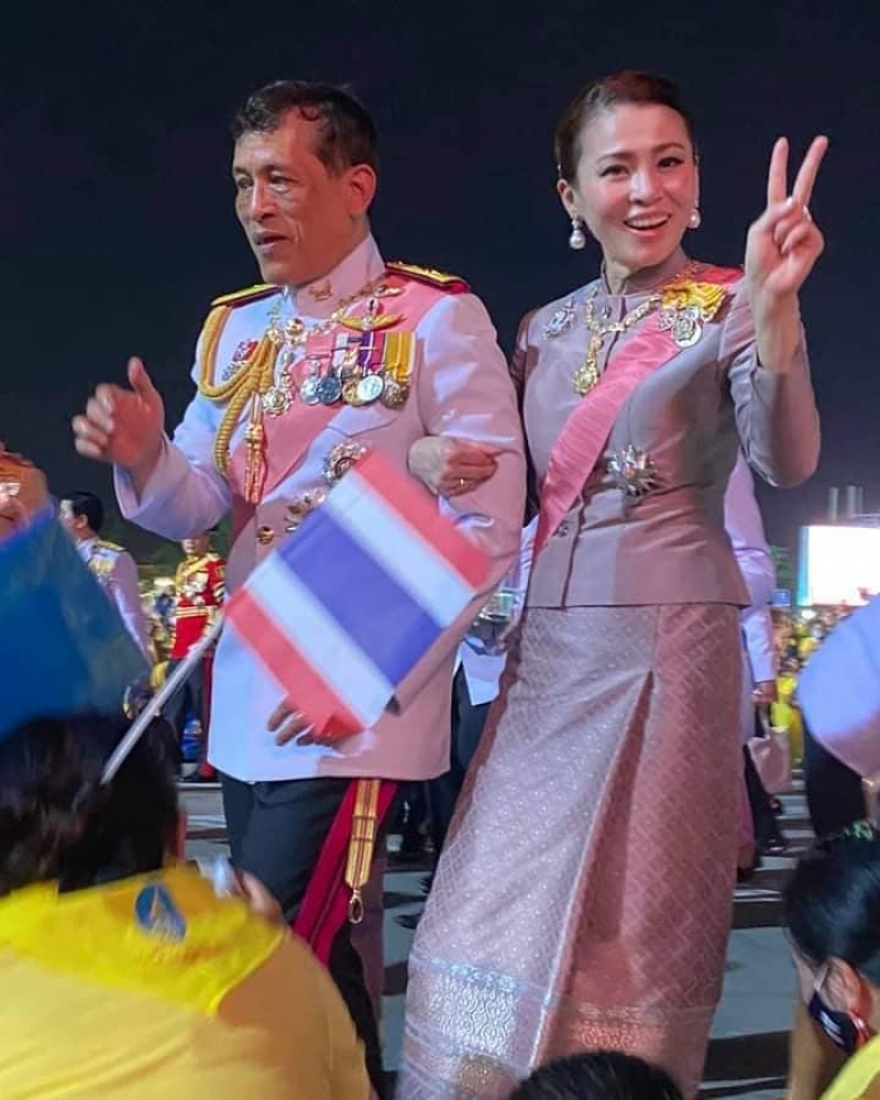 ไปถึงด้านหน้าพระบรมมหาราชวัง เลี้ยวขวาไปถึงหน้าศาลหลักเมือง โดยมีประชาชนเฝ้าฯ รับเสด็จตลอดเส้นทาง ต่างโบกธงชาติไทย ธงพระปรมาภิไธย วปร ธงพระนามาภิไธย สท ปลิวไสว พร้อมเปล่งเสียงทรงพระเจริญดังกึกก้อง