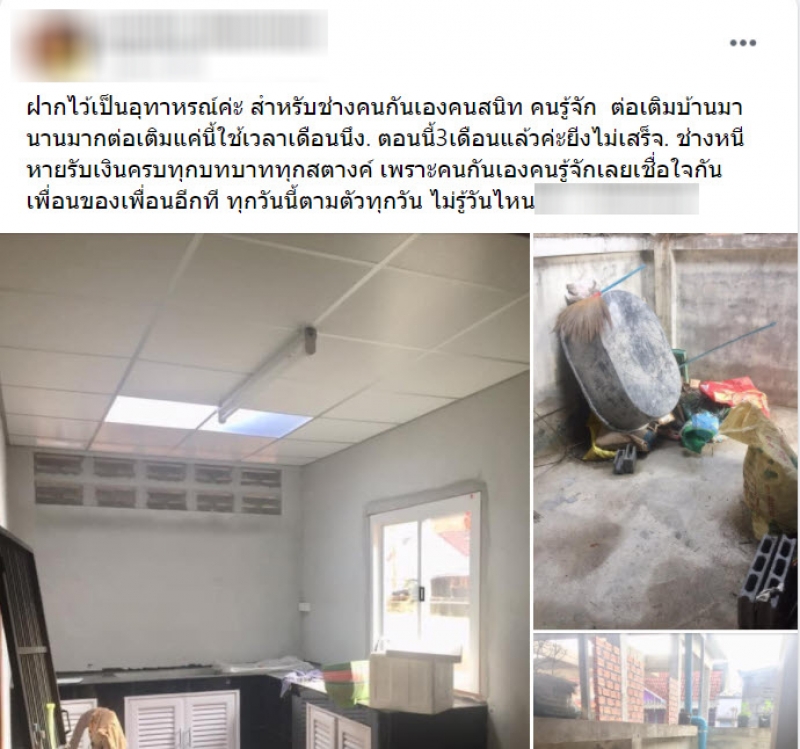 สาวโพสต์ จ้างช่างมาต่อเติมบ้าน เพราะคำว่าคนกันเอง คนสนิทคนรู้จักและเชื่อใจ