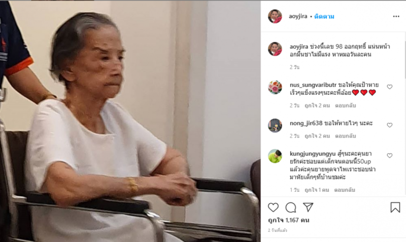 รวมทั้งมีแฟนคลับรุ่นลูกรุ่นหลานเข้ามาคอมเมนต์กำลังใจล้นหลาม พร้อมอวยพรให้คุณยายหายเร็วๆ "สู้ๆนะคะคุนยายรักค่ะชอบแต่เด็กจนตอนนี้50upแล้วค่ะคุนยายพูดจาไพเราะชอบนำมาหัยเด็กๆที่บ้านชมค่ะ" "หนูและป้าที่บ้าน เป็นกำลังใจให้ยายนะคะ ยิ้มๆนะคะ" "ขอให้คุณยายหายเร็วๆ สุขภาพแข็งแรงขึ้นนะคะ" เป็นต้น