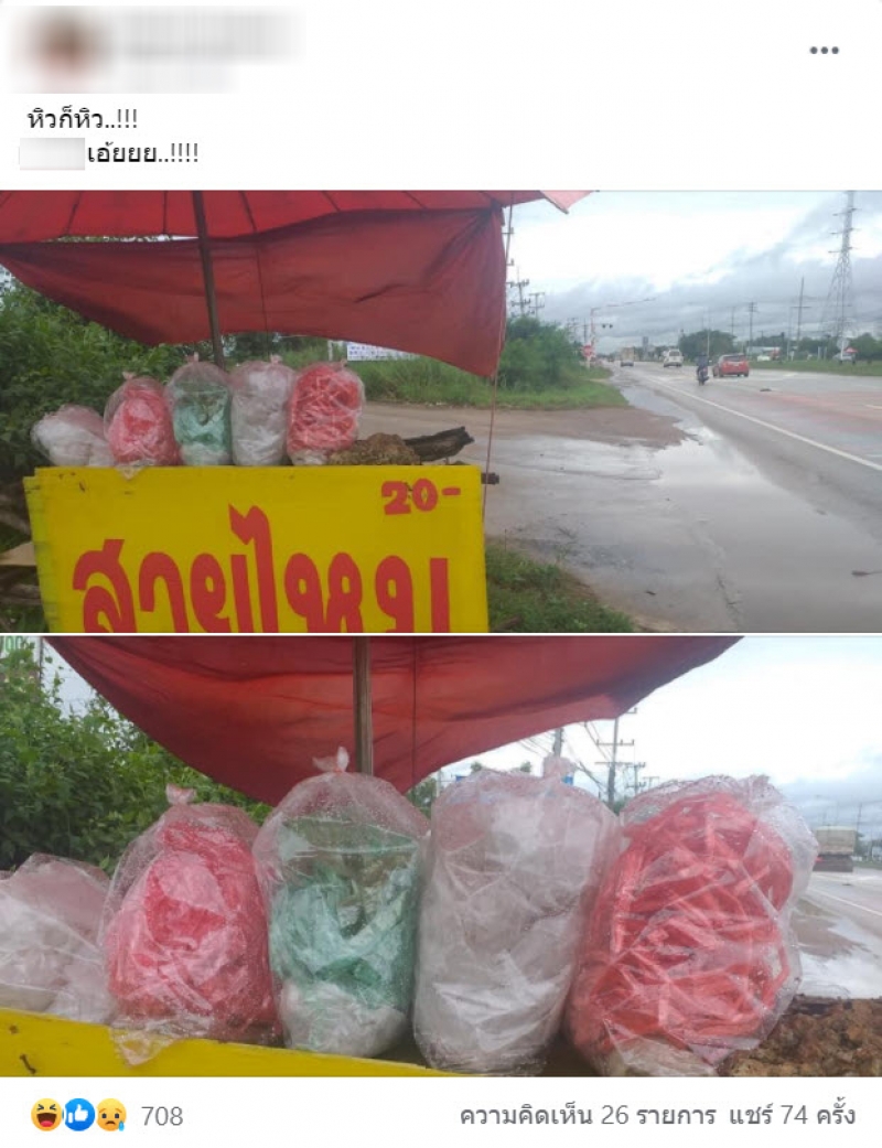เป็นอีกหนึ่งเรื่องราวที่โซเชียลเข้ามาแสดงความเห็ และให้ความสนใจกันเป็นจำนวนมาก หลังมีผู้ใช้เฟสบุ๊ครายหนึ่งได้ออกมาโพสต์ หลังจอดรถซื้อของกินข้างทาง หลังเห็นป้ายขายขนมสายไหมในเต้นท์ร้านเล็กๆข้างทางติดไว้ว่า 20 บาท ราคาถูกดีก็รีบจอดรถแวะซื้อ แถมถุงก็ใหญ่ท่าทางจะคุ้มกับราคาอย่างมาก แต่ที่ไหนได้พอจอดรถใกล้ที่ร้าน กลับต้องผิดหวังมาก เพราะในถุงขนมนั้นกลับไม่ใช่ขนมสายไหมที่แท้จริง