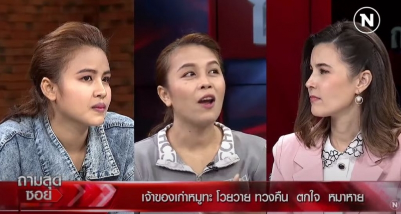 พิธีกร ธัญญ่า ธัญญาเรศ พูดคุยกับคุณขวัญ กับ คุณก้อย เกี่ยวกับประเด็นดราม่าที่เกิดขึ้น โดยทั้งคู่บอกว่า ตอนนั้นอยู่ต่างจังหวัด เมื่อกลับมาถึงก็ไม่เจอหมาแล้ว ความรู้สึกแรกรู้สึกตกใจ รีบไปสอบถามร้านหมูกระทะว่าหมาหายไปไหน ยอมรับว่าตอนนั้นโกรธ ทำไมร้านบอกว่าหมาตัวนี้เป็นหมาจร ก็พูดจาไม่ดีกับที่ร้านไป แต่เมื่อร้านบอกไม่รู้เรื่องก็ขอโทษไป ณ ตอนนั้น