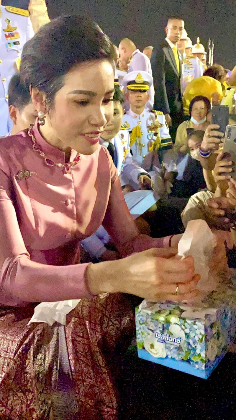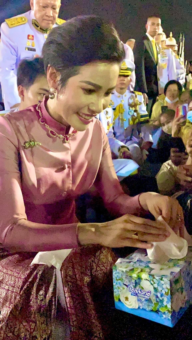 เจ้าคุณพระสินีนาฏ หยิบทิชชูที่ปชช.ยื่นให้ใช้ พับเก็บอย่างดี