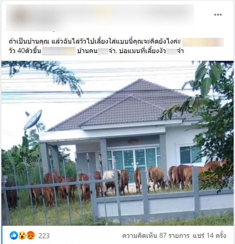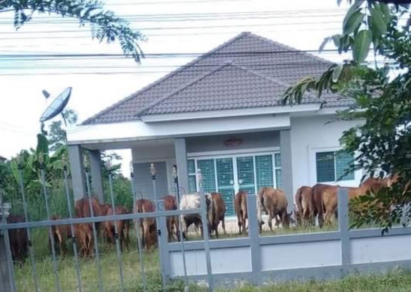 เป็นอีกหนึ่งเรื่องราวที่โซเชียลเข้ามาแสดงความเห็นกันเยอะมากๆ หลังผู้ใช้เฟสบุ๊คชื่อ pannapa komosiema ได้ออกมาโพสต์เรื่องราวโดยได้เล่าว่า เธอได้เจอมาเมื่อเธอยืนอยู่ที่หน้าบ้านแต่กลับไม่สามารถจะเดินเข้าไปได้ เพราะภายในบ้านของเธอเต็มไปด้วยกลุ่มวัวหลายสิบตัว เดินกินหญ้าไปมาภายในบริเวณบ้านของเธออยู่อย่างสนุกสนาน ซึ่งจากที่เห็นรั้วบ้านของเธอก็ถูกปิดเอาไว้อยู่นั่นหมายถึงว่ามีคนที่แอบเปิดประตูรั้วให้กลุ่มวัวเข้าไป และก็ปิดเอาไว้เพื่อทำการเลี้ยงอยู่ในนั้นซึ่งจะเป็นใครไปไม่ได้ก็น่าจะเป็นคนเลี้ยงวัวนี่เอง
