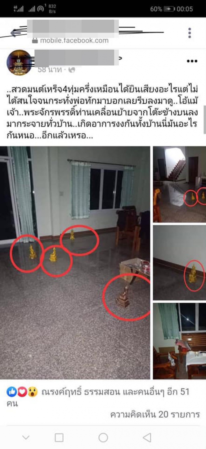 หนุ่มเพิ่งสวดมนต์เสร็จหมาดๆ ได้ยินเสียงมาจากชั้น 1 รีบลงมาดูย้ายตำแหน่งกระจายทั่วบ้าน