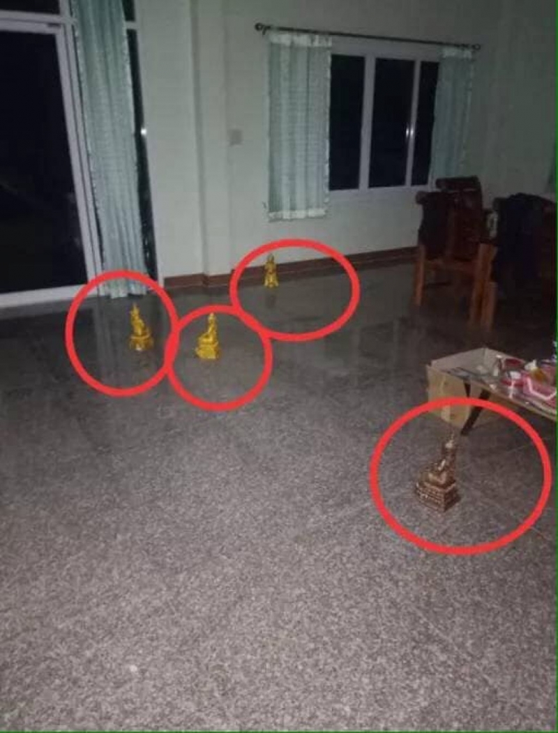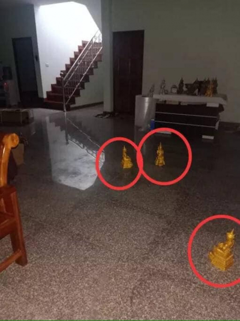 สวดมนต์เสร็จ4ทุ่มครึ่งเหมือนได้ยินเสียงอะไรแต่ไม่ได้สนใจจนกระทั่งพ่อทักมาบอกเลยรีบลงมาดู โอ้แม้เจ้า พระจักรพรรดิ์ท่านเคลื่อนย้ายจากโต๊ะข้างบนลงมากระจายทั่วบ้าน..เกิดอาการงงกันทั้งบ้านนี่มันอะไรกันหนอ อีกแล้วเหรอ