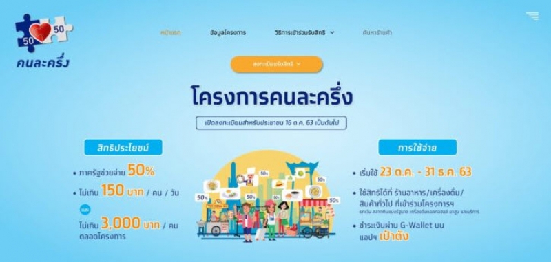 ขั้นตอนการลงทะเบียนโครงการ คนละครึ่ง