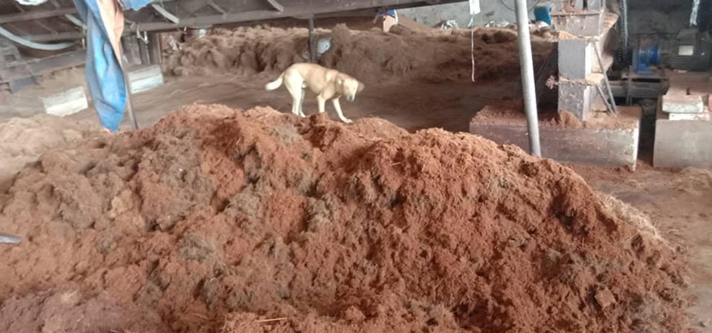 โรงงานที่สองเป็นโรงงานแปรรูปมะพร้าว เปิดมาอย่างผิดกฎหมายและไร้ใบอนุญาตเช่นกัน ตัวโรงงานตั้งอยู่ไม่ห่างจากโรงงานผลิตเส้นหมี่ แต่ภาพเลวร้ายกว่ามาก มะพร้าววางกองพะเนินบนกองดินสกปรกซึ่งเป็นโคลน ลังพลาสติกก็เก่ามาก