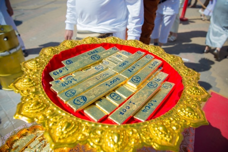 ภาพ พระนาคปรกทองคำ หนัก 20 กก. หลังเข้าพิธีเททองหล่อ ก่อนอัญเชิญประดิษฐานในองค์พระธาตุพนม