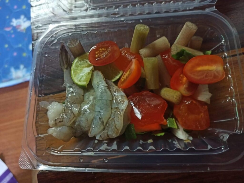 อระบายค่ะ 555+ เมื่อใช้สิทธิ์คนละครึ่งเลยได้อาหารมาครึ่งเดียว ที่เห็นนี่คือยำกุ้งสดไข่แดงเค็ม อาหารราคาเต็ม 110 ใช้สิทธิ์คนละครึ่งเป็น 55 บาท หรือนี่ได้เยอะแล้วแต่เราคิดไปเองคนเดียวว่าน้อย
