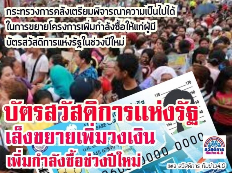 รัฐเล็งขยายการเพิ่มวงเงินในบัตรสวัสดิการเเห่งรัฐ ต่อไปอีก2-3เดือน(ต่อจากเดือน ธ.ค.63) ไว้ใช้จ่ายช่วงเทศกาลปีใหม่เเละเทศกาลสำคัญ