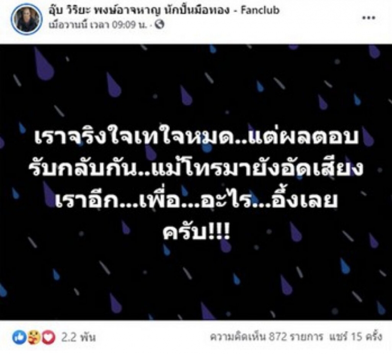 ทั้งนี้ ตนจะขอพูดคุยหลังจากทราบข้อเท็จจริงจากลุงพลก่อน แต่เชื่อว่าพี่อุ๊บเป็นคนจิตใจดี ยอมรับฟังเสมอ ทั้งนี้เรื่องที่เกิดขึ้นหากมีฝ่ายหนึ่งฝ่ายใดยอมขอโทษก่อน เรื่องก็คงไม่บานปลายขนาดนี้