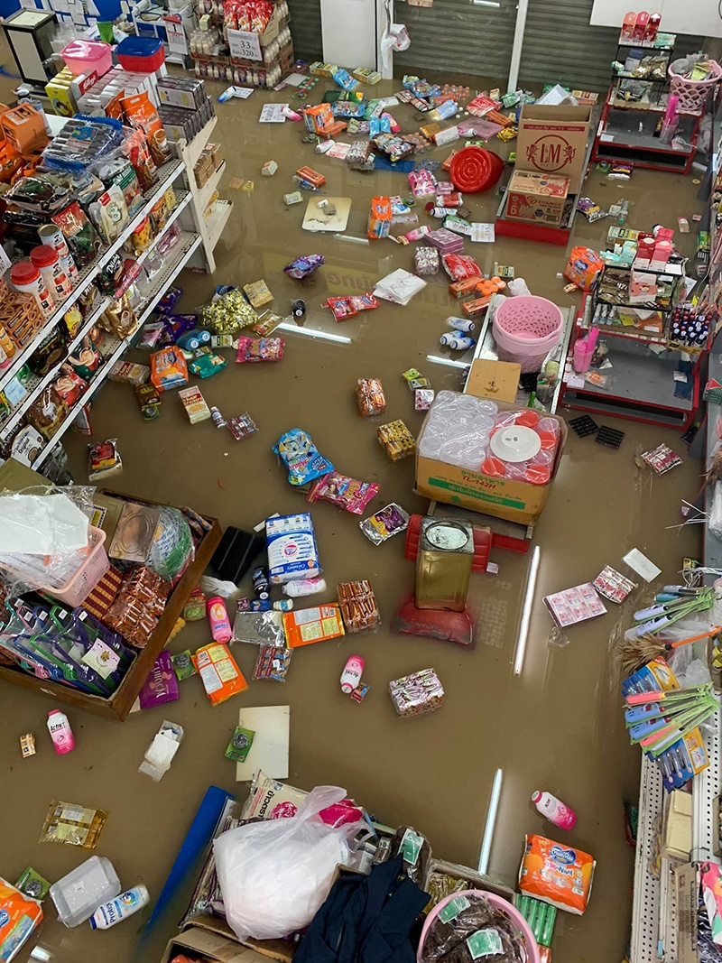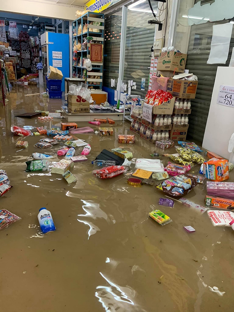 ล่าสุดมีผู้ใช้เฟซบุ๊ก Kanet Jongjit โพสต์ภาพน้ำท่วมภายในร้านค้าพร้อมขอความว่า หนักสุดในชีวิต พูดไม่ออก