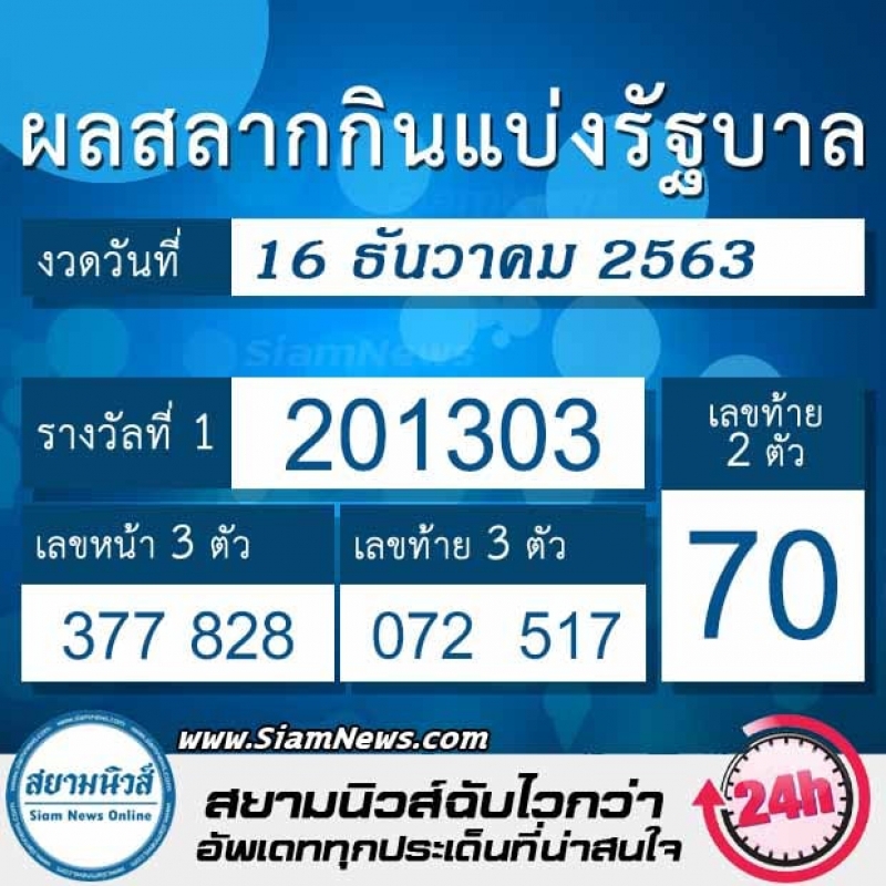 ออกไปเป็นที่เรียบร้อยแล้วจ้า สำหรับการประกาศผลรางวัลสลากกินแบ่งรัฐบาลประจำวันที่ 16 ธันวาคม 2563 โดยผลมีดังนี้