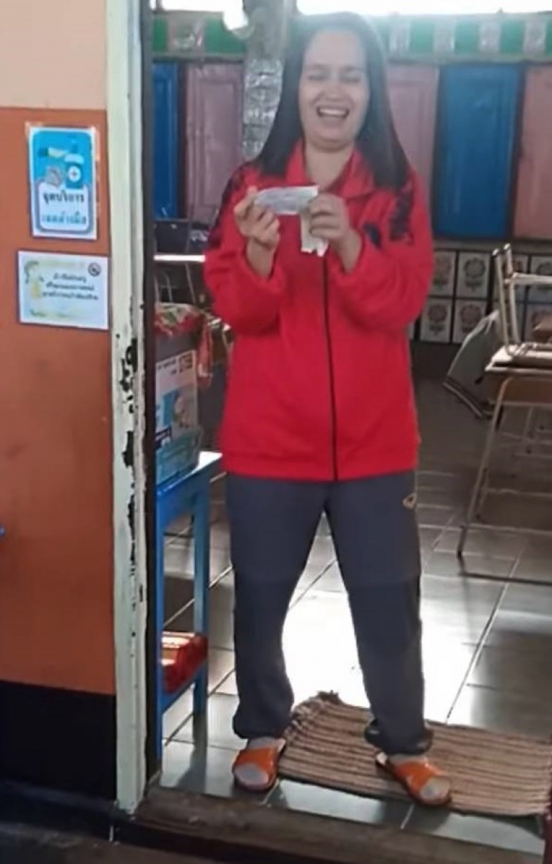 ครูสาวนครพนมกระโดดลั่น ดีใจสุดขีดถูกรางวัลที่ 1