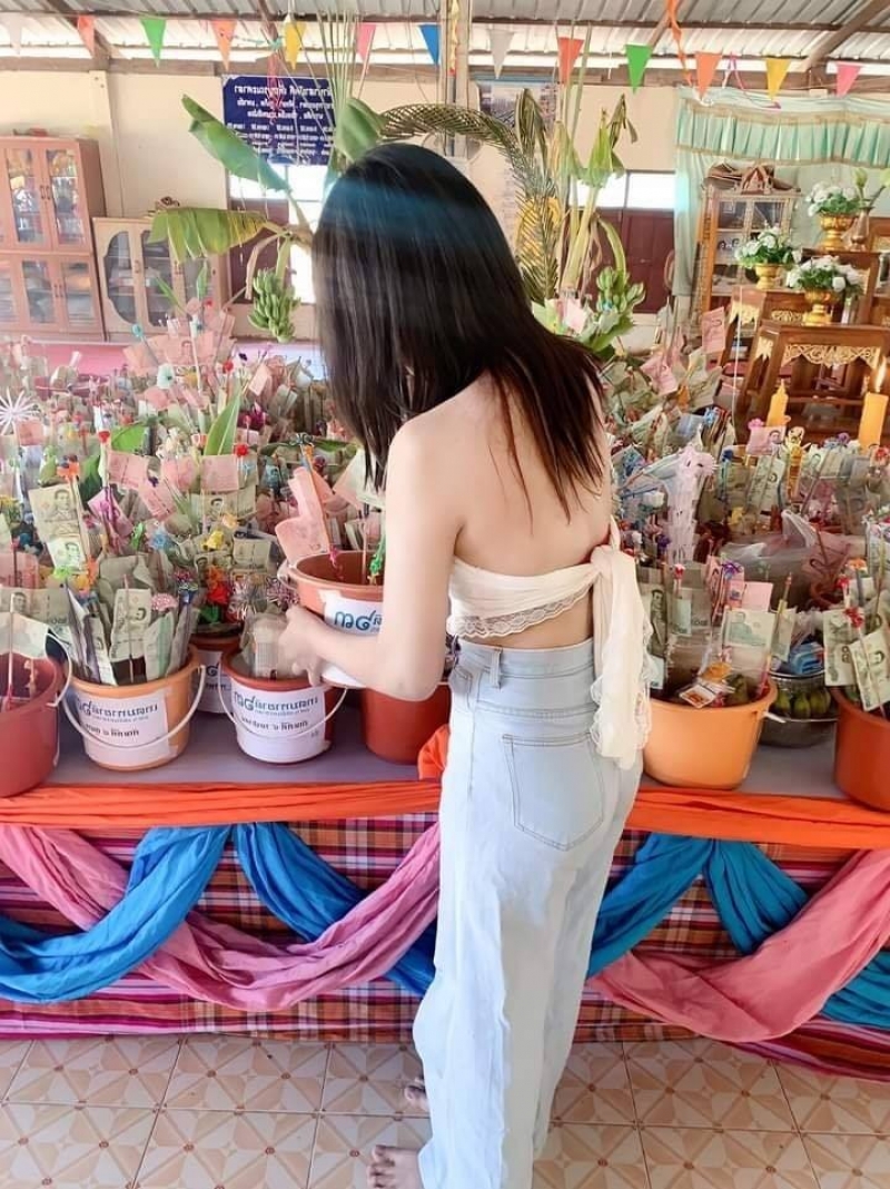 สาวทำบุญที่วัด