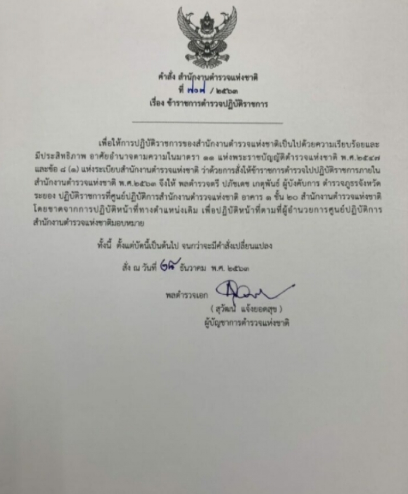 สืบเนื่องจากกรณีดังกล่าวนั้น วันนี้ (28/12/2563) ที่สำนักงานตำรวจแห่งชาติ (ตร.) พล.ต.อ.สุวัฒน์ แจ้งยอดสุข ผบ.ตร. เปิดเผยกรณีความคืบหน้า บ่ อ น ในจ.ระยอง ที่แพร่cv ว่าล่าสุดได้เซ็นคำสั่งย้าย พล.ต.ต.ปภัชเดช เกตุพันธ์ ผู้บังคับการตำรวจภูธร จ.ระยอง (ผบก.ภ.จว.ระยอง) มาปฏิบัติราชการที่ศูนย์ปฏิบัติการสำนักงานตำรวจแห่งชาติ(ศปก.ตร.) โดยให้ขาดจากตำแหน่งเดิม