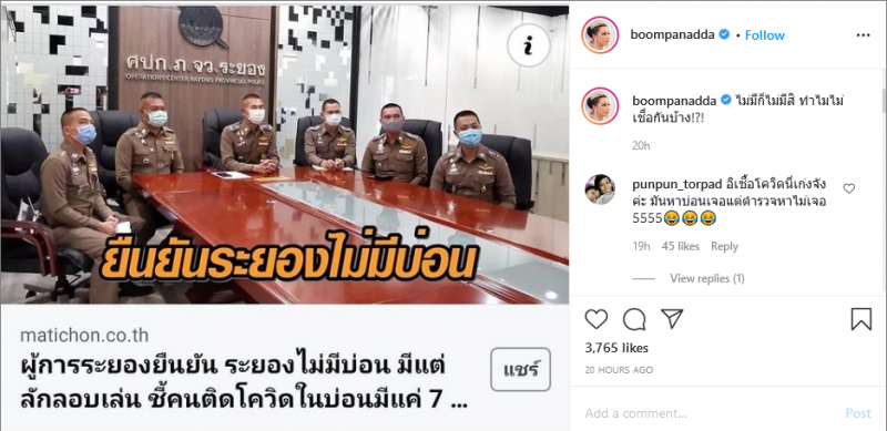 โดยล่าสุดนั้น บุ๋ม ปนัดดา พิธีกร-นักแสดงชื่อดัง ก็ได้ออกมาเคลื่อนไหวในประเด็นดังกล่าว ด้วยการโพสต์ข้อความและภาพข่าวอินสตาแกรม boompanadda พร้อมระบุข้อความว่า ไม่มีก็ไม่มีสิ ทำไมไม่เชื่อกันบ้าง