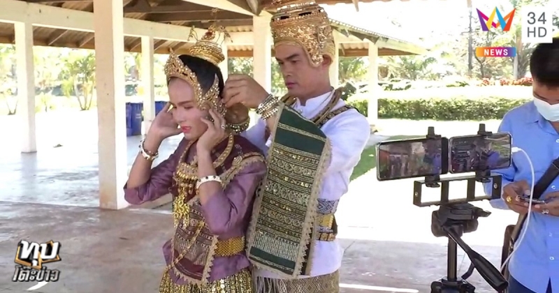 โดยลุงพล แต่งกายแบบขอมโบราณ ใส่เสื้อขาวด้านใน ส่วนศีรษะสวมมงกุฎสูง ทางด้านป้าแต๋นแต่งกายเป็นนางปทุมวดี ใส่เสื้อผ้าไทย สวมมงกุฎชฏา ตามแบบของเจ้าเมืองสกลนครโบราณ เดินถวายเครื่องสักการะพระธาตุเชิงชุม