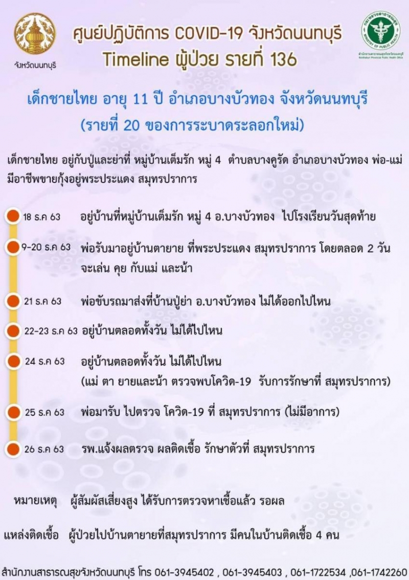 ADVERTISEMENTผู้ติด รายที่ 136 (รายที่ 20 ของรอบใหม่) จ.นนทบุรี เด็กชายไทย อายุ 11 ปี ที่อยู่ อำเภอบางบัวทอง จังหวัดนนทบุรี