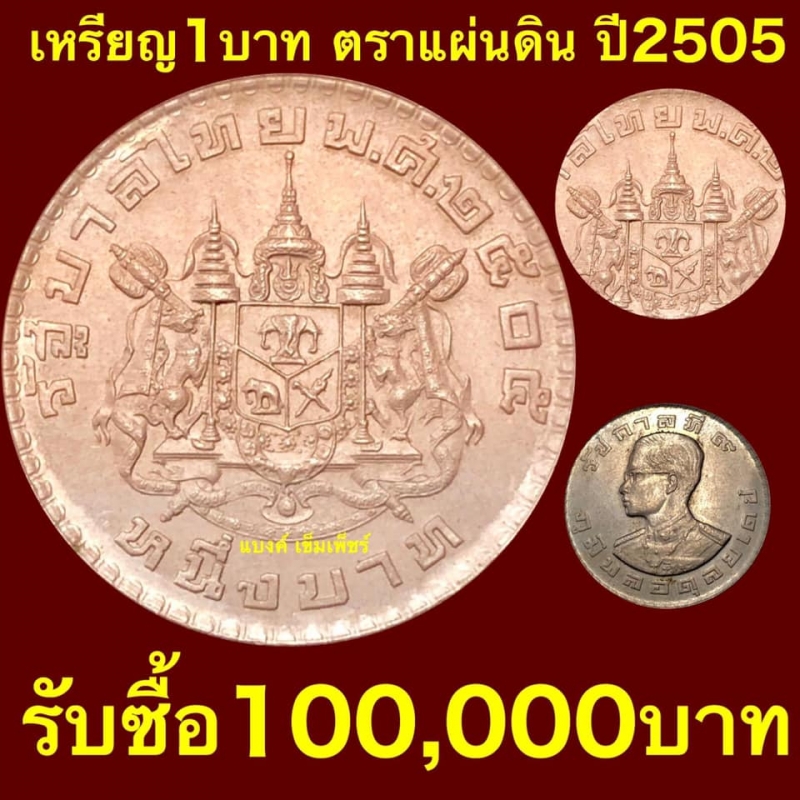 แชร์ด่วน รับซื้อจริง รับซื้อเหรียญ 1 บาท ตราแผ่นดิน ปี 2505 ราคาเหรียญละ100,000บาท (หนึ่งแสนบาท) รับเฉพาะที่ยอดเจดีย์ชี้ไปที่ ย เท่านั้น